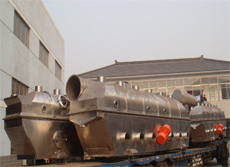 物料自進(jìn)料口進(jìn)入機(jī)內(nèi),在振動力作用下,物料沿水平方向拋擲向前連續(xù)運動。熱風(fēng)向上穿過流化床和濕物料換熱,濕空氣經(jīng)旋風(fēng)分離器除塵后由排風(fēng)口排出,干燥物料由排料口排出。