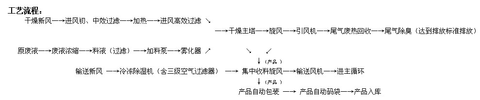該機組由廢液濃縮、噴霧干燥、產(chǎn)品收集及包裝、尾氣廢熱回收和尾氣除臭等部分組成。