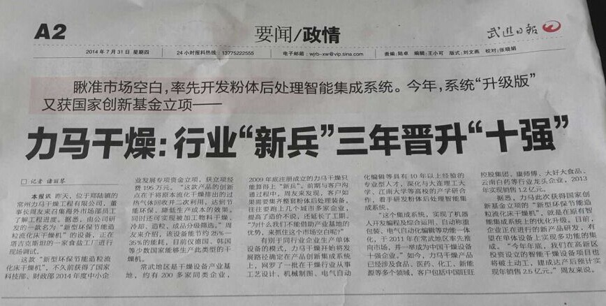 【《武進(jìn)日報(bào)》A2版報(bào)道力馬干燥】
