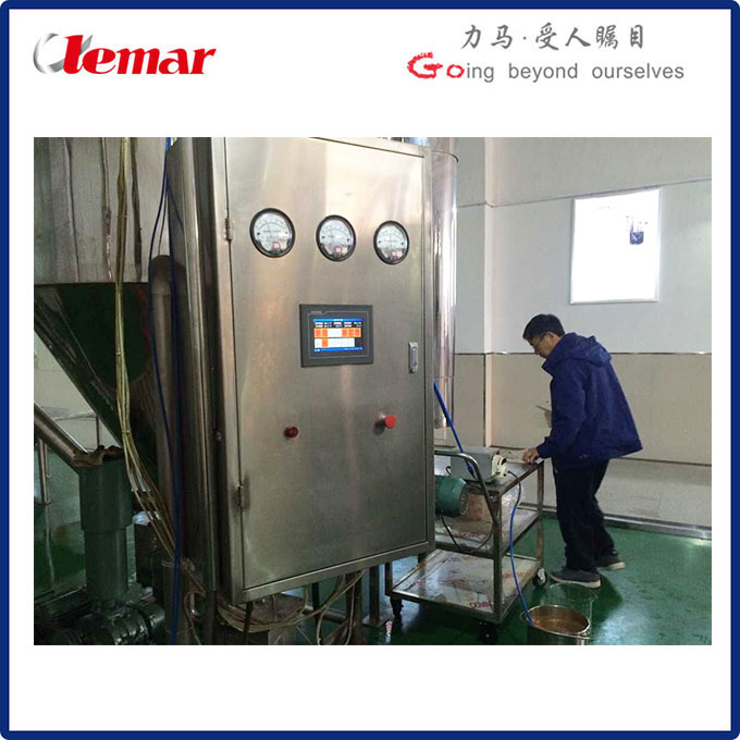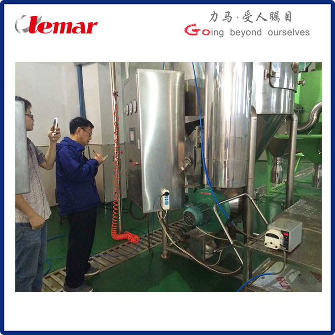 2015年5月16日湖南一制藥公司的張工和徐公一行到我公司進(jìn)行中藥制粉實(shí)驗(yàn),經(jīng)過(guò)40分鐘的等待,紅糖色的中藥液體很快變成了細(xì)膩的紅糖色粉末,色澤與中藥液體相同,味道也無(wú)差異,口感非常棒,得到了客戶(hù)的好評(píng)。