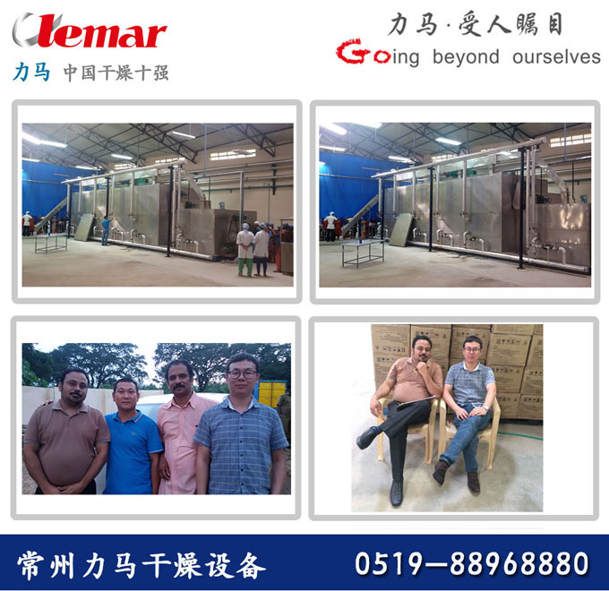 2015年9月30號,從印度傳來了喜訊,用于蔬菜干燥的三層帶式干燥機(jī)順利調(diào)試成功。